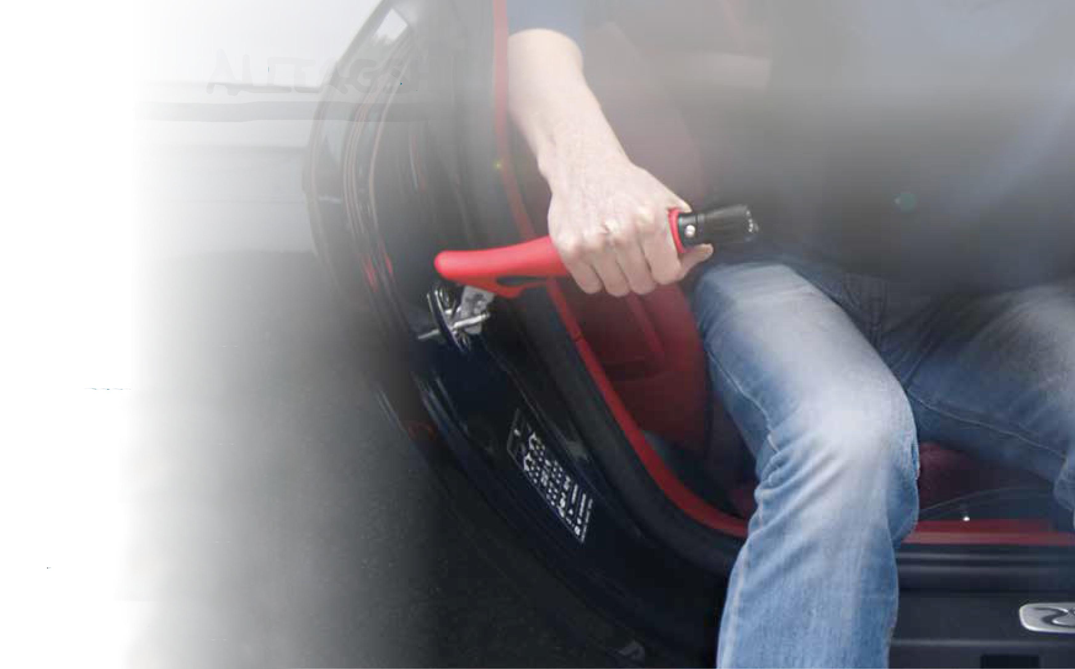 Mobil handgrepp som underlättar att ta sig in och ur bilen. Handgreppet sätts i bildörrslåset för att fästa den. Handgreppet är belagd med anti-halk material för ett säker och glidfri grepp medan du förflyttar dig. Kan även användas som bandskärare/nödhammare om du hamnar i en nödsituation.Lämplig för alla vanliga biltyper.